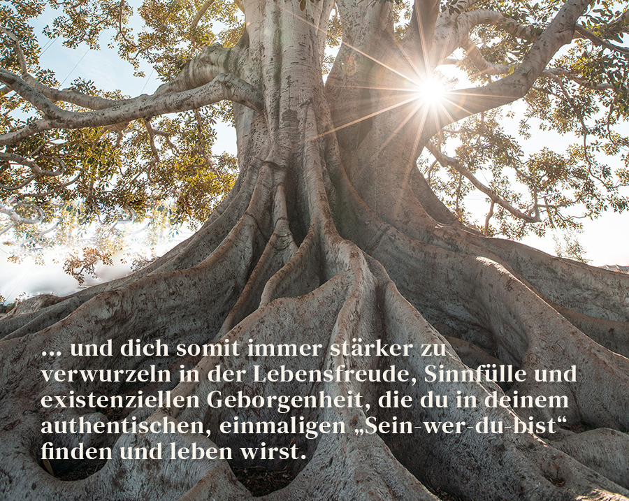 … und dich somit immer stärker zu verwurzeln in der Lebensfreude, Sinnfülle und existenziellen Geborgenheit, die du in deinem authentischen, einmaligen „Sein-wer-du-bist“ finden und leben wirst.